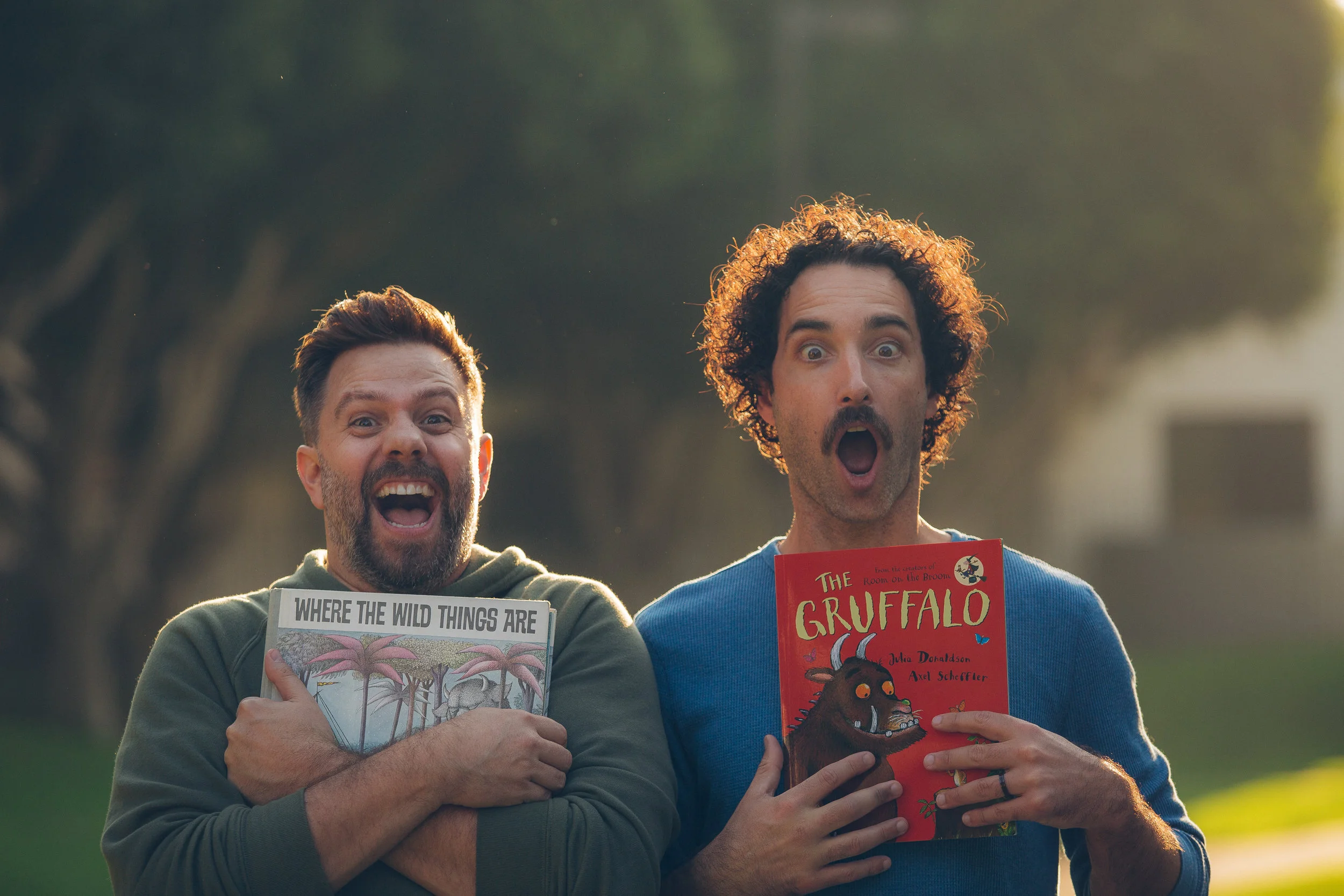 One day, a friend of Craig’s named Abby asked him to help her friend Ryan make a web series. (A web series is like a TV show, but it’s on the Internet and it’s usually not as good.) You see, Ryan had written a whole web series and Craig knew how to use cameras and microphones and edit videos. Craig said “Yes!” Ryan said, “Hooray!” Abby said, “Cool. I’m late for work!” After they made Ryan’s web series, the two boys (who are now men, by the way) said, “That was a lot of fun!” “We should make more things together!” And so they did. And one day Ryan said to Craig, “I have a crazy idea.” Craig said, “I love it…. What is it?” And Ryan said that he wanted to read children’s books on YouTube. You see, Ryan had spent several years in Los Angeles reading in Elementary Schools as part of a program called “Book Pals.” And Craig loved the idea because he had 15 nieces and nephews that lived far away and he missed reading to them. So one sunny day in 2016 they met at Craig’s house, set up the cameras and lights and microphones, and read their first book: “Corduroy” by Don Freeman. (This happened to be Ryan’s favorite book when he was a little boy. Before he collected sneakers.) They didn’t know exactly what their show would become, but they just kept reading! Over the next couple years the show changed and became better and better. They moved filming to Ryan’s house, they bought new shirts, and have now read over 120+ books!