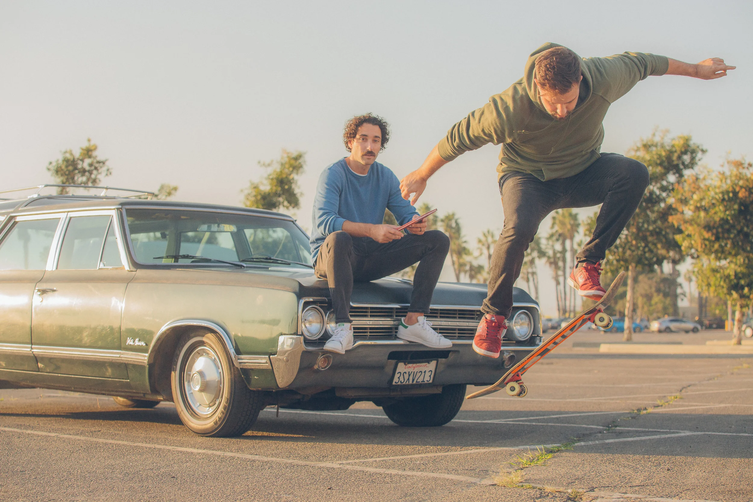 In the year 2014 the boys STILL had not met, but don’t worry, that wouldn’t last long! They were both now living in the cultivated southern parts of the state of California in a city called Los Angeles. It was near the ocean and was filled Toyota Priuses, palm trees, and actors. And as a matter of fact the two boys, Ryan and Craig were both actors too! But they didn’t have Priuses. (Their cars aren’t really important to the story.) Anyway! That year Craig and Ryan were both taking improv classes at the Upright Citizen Brigade Theater. Improv is a type of live comedy where you make up funny stories on the spot with no planning. It’s hard and takes a lot of practice… like skateboarding or basketball.